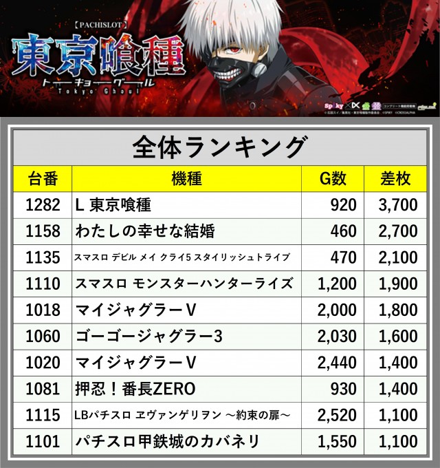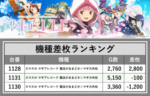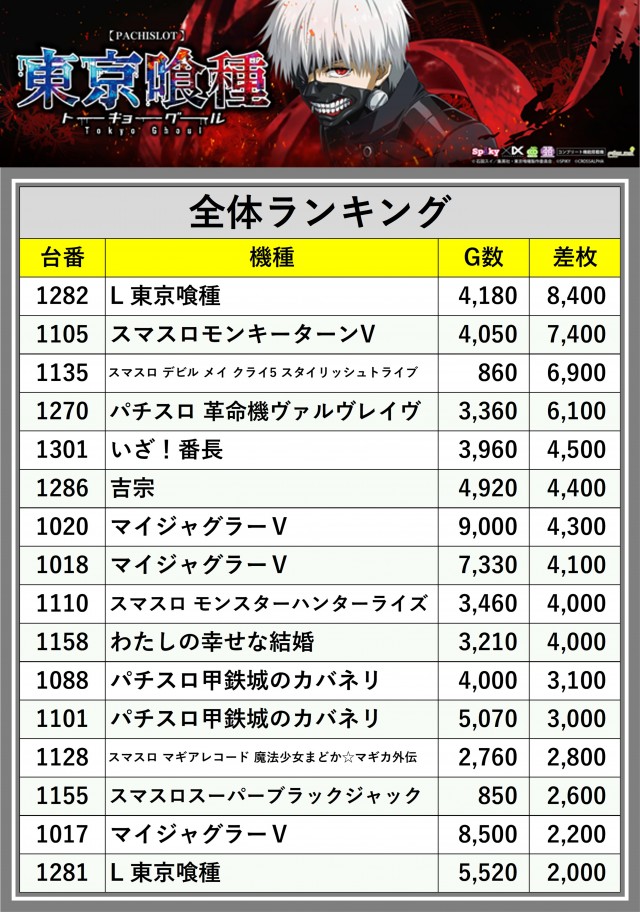 ※差枚数順に掲載しています