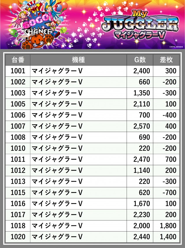 厳選された取材対象機種をはじめ、その他スロット全体から好記録が飛び出した!プレイヤーが楽しんだ1日を下記データにて振り返ってみて欲しい。