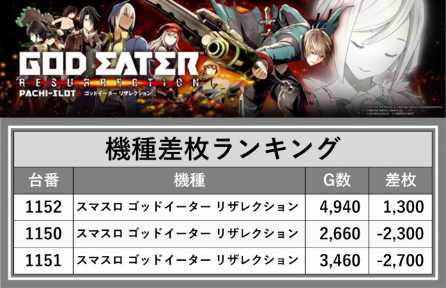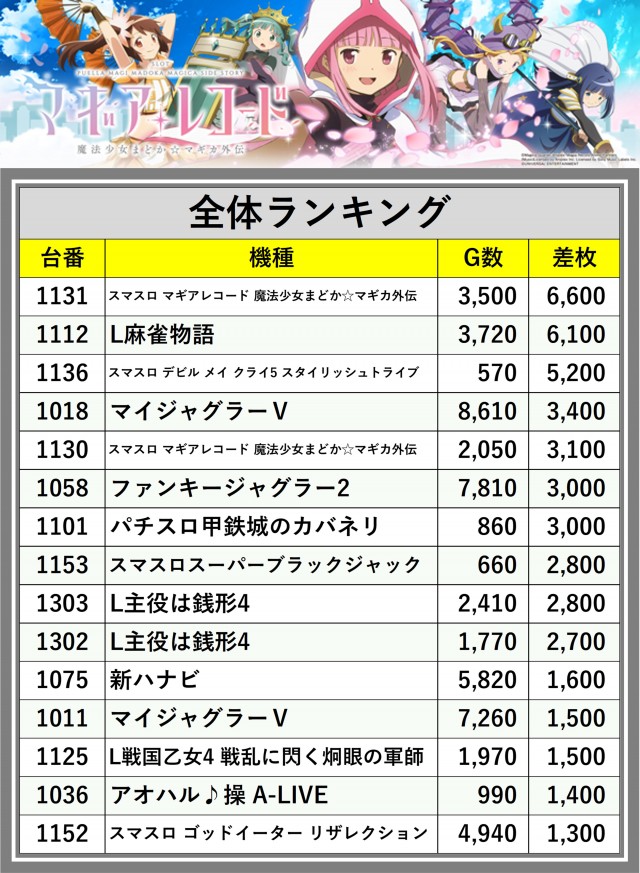 ※差枚数順に掲載しています
