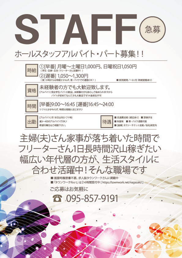葉山店 STAFF一同ピースパークグループ店舗一覧 ピースパーク浜町店 長崎県長崎市浜町1-3 ☎095-825-1512
