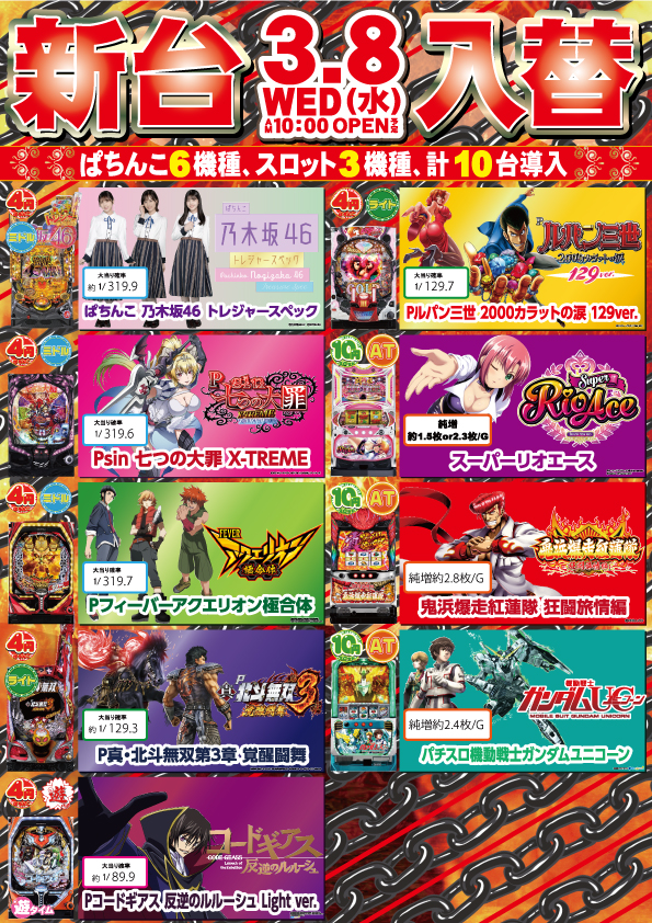 ☆彡2月22日(水)☆新台入替10時オープン☆彡
