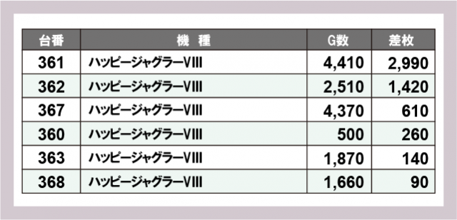 ※差枚数順に掲載しています