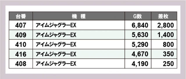※差枚数順に掲載しています