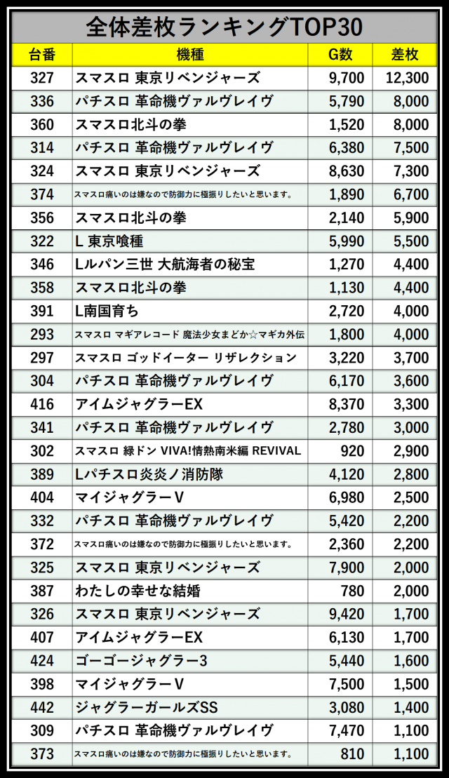 その結果の中から、ぱちタウンが注目すべきポイントを厳選してユーザーにお届け!プレイヤーが楽しんだ一日を下記データにて振り返ってみて欲しい。