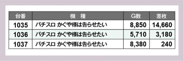※差枚数順に掲載しています