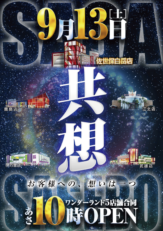 2025/09/13ワンダーランド佐世保白岳店 エリア合同 朝10時開店❗❗