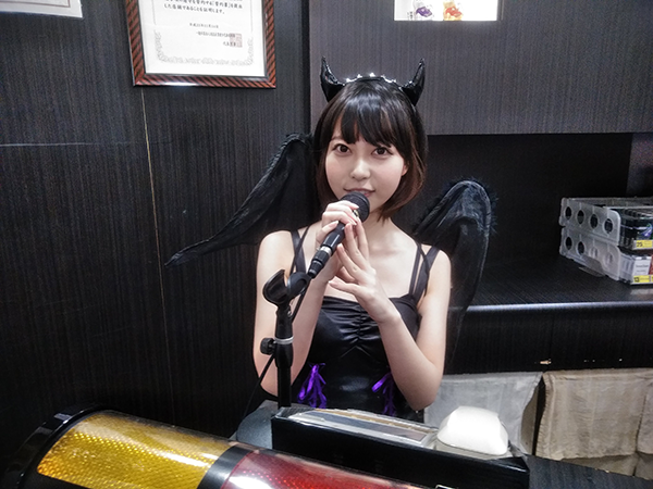 黒い羽根&ツノを装着し、小悪魔ガールに変身っ☆