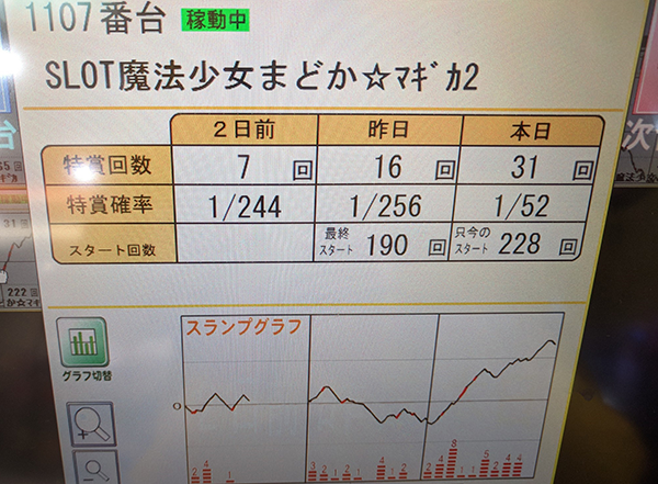 今回のアッパーは、1107番台の【SLOT魔法少女まどか☆マギカ2】に出現した…