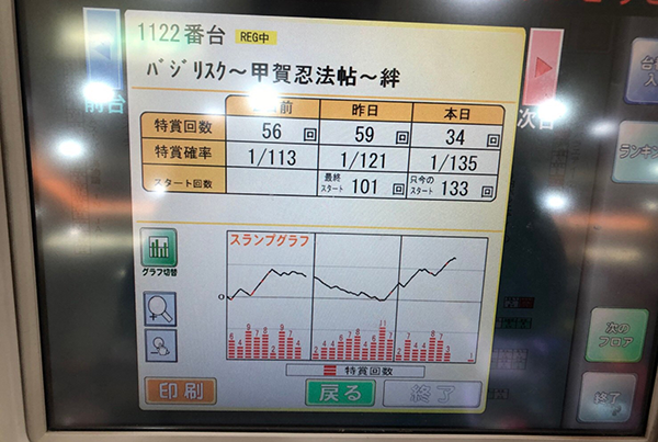 キングイーグルズ佐世保針尾店の1122番台【バジリスク~甲賀忍法帖~絆】に出現した…