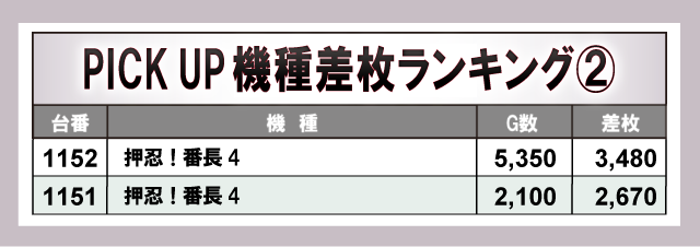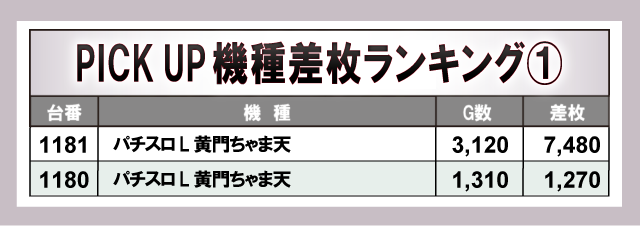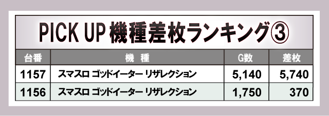 『パチスロL黄門ちゃま天』『押忍!番長4』『スマスロ ゴッドイーター リザレクション』から4桁プラス台が複数台発生。これらの機種が盛り上がりに貢献していたと言えるだろう。