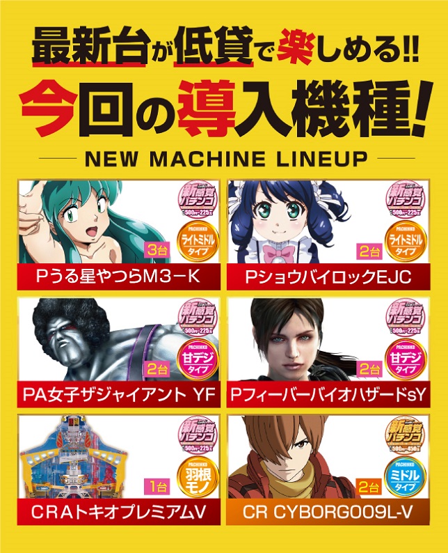 明日5/21(火)新台入替[予定]一挙5機種10台導入!