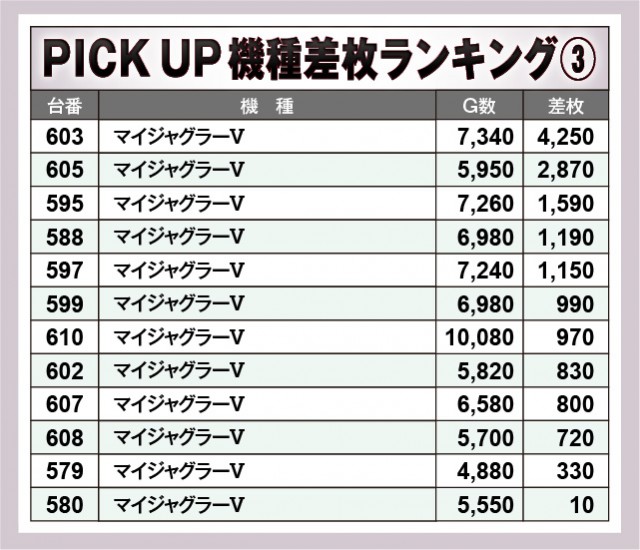 ※差枚数順に掲載しています。