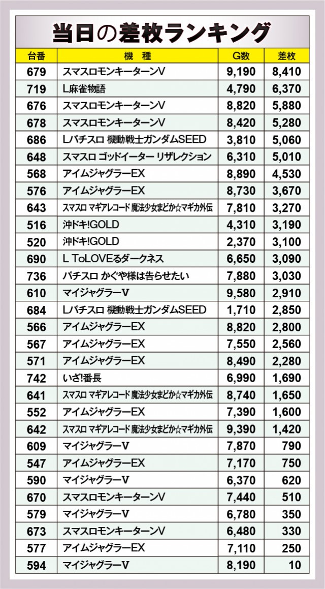※差枚数順に掲載しています。