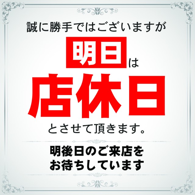 本日、店休日。明日、新台入替、朝10時オープン!