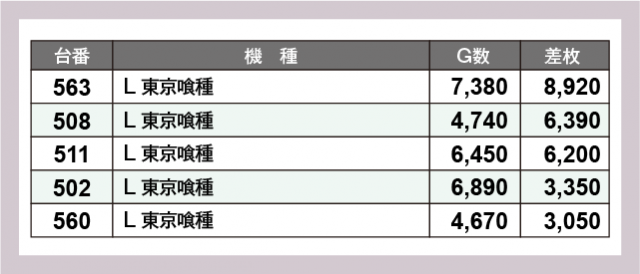 ※差枚数順に掲載しています