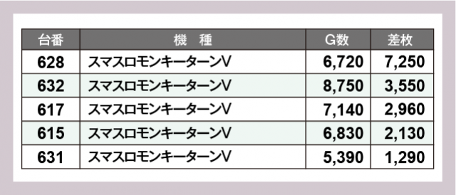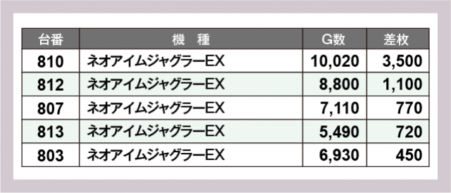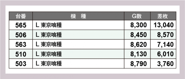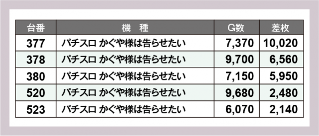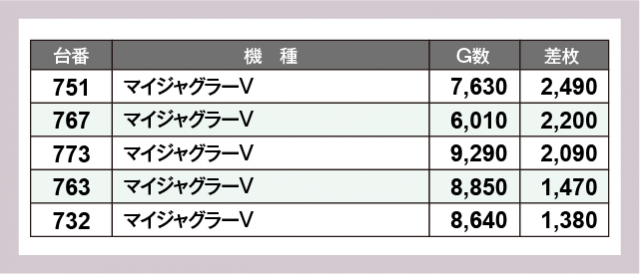 ※差枚数順に掲載しています