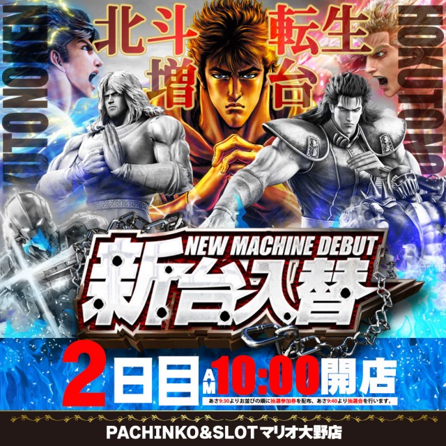 本日【店休日】明日【新台入替】10時開店
