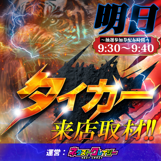 明日20日🌈タイガー来店取材🌈抽選開始時間は9時40分🌈
