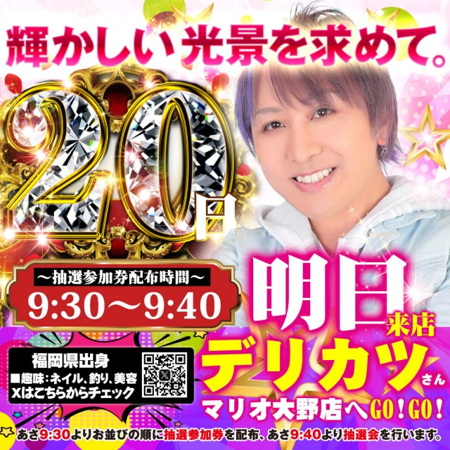 本日20日🌈デリカツさん来店🌈抽選開始時間は9時40分!