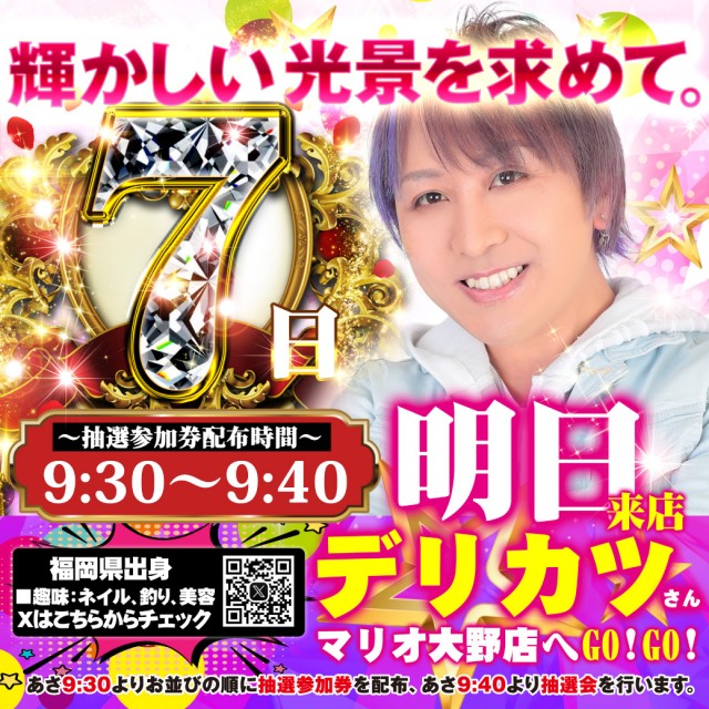 明日7日🌈デリカツさん来店🌈抽選開始時間は9時40分‼🌈