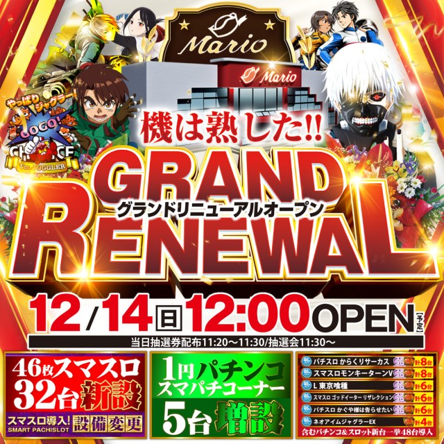 本日12日🌈グランドリニューアル🌈抽選時間18時30分❗🌈