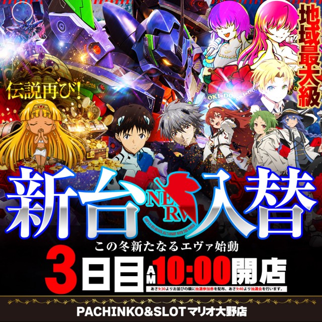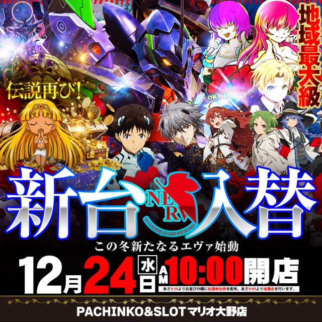本日24日🌈新台入替10時開店🌈抽選開始時間は9時40分!!
