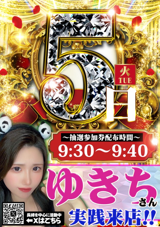 本日5日🌈新台入替&来店10時開店🌈抽選開始時間は9時40分