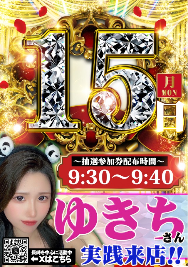 2025/07/15本日15日🌈ゆきちさん来店🌈抽選開始時間は9時40分!佐世保市
