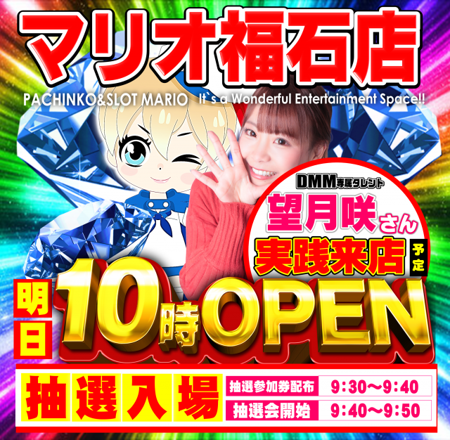 🌈新台入替&望月咲さん実践来店🌈抽選集合時間9:30~40