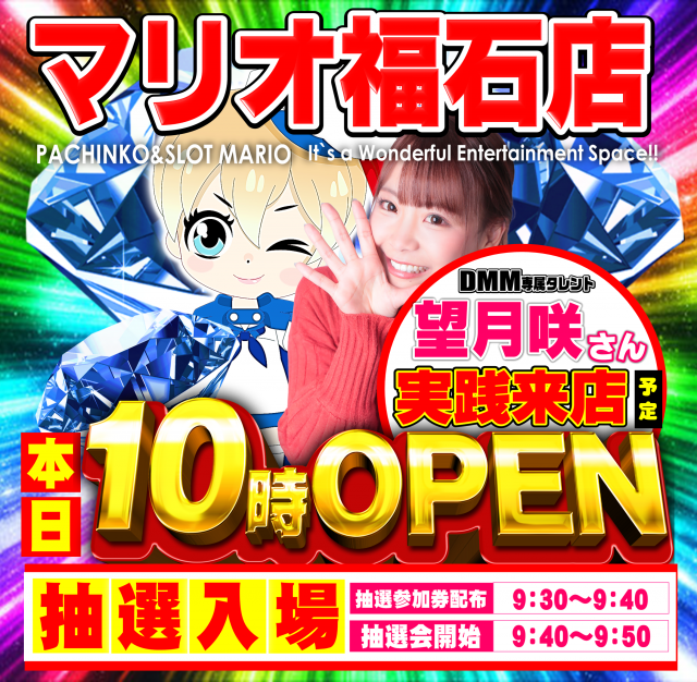 本日🌈望月咲さん実践来店🌈【抽選集合時間】9:30~40迄