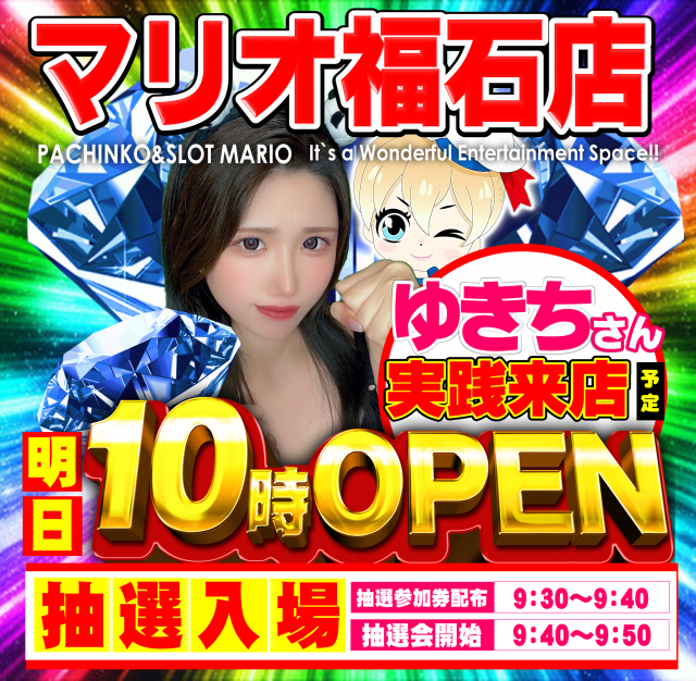 明日🌈ゆきちさん実践来店🌈【抽選集合時間】9:30~40迄