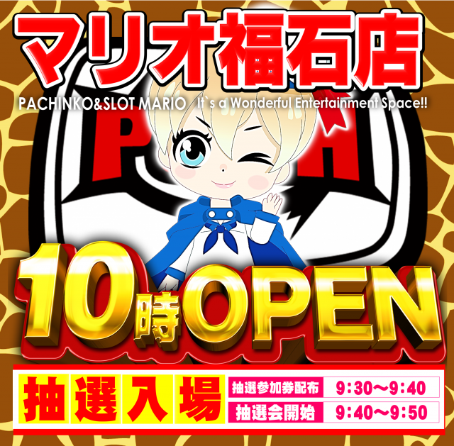 本日店休日明日6日【新台入替】10時開店!抽選入場です
