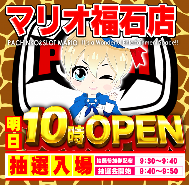明日🎰10時開店🎰抽選集合時間は9時30分~40分迄🎰