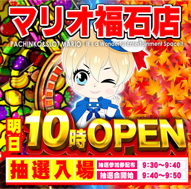 明日🎰10時開店🎰抽選集合時間は9時30分~40分迄🎰