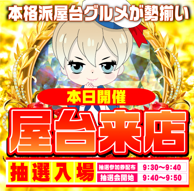 本日駐車場にて🎰屋台来店🎰【抽選集合時間】9:30~40迄