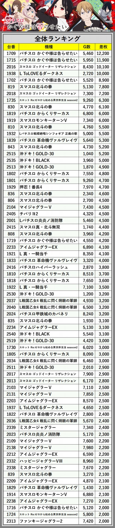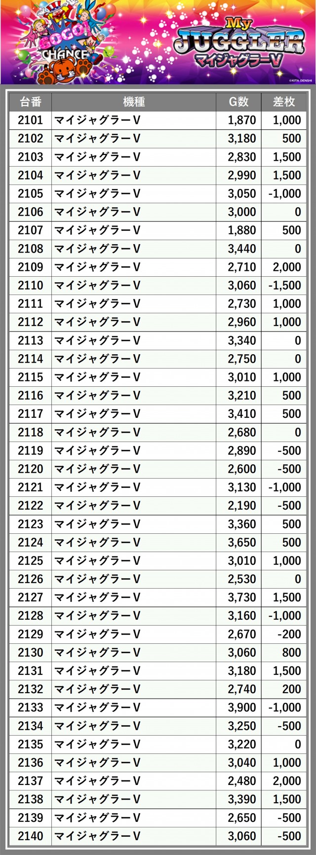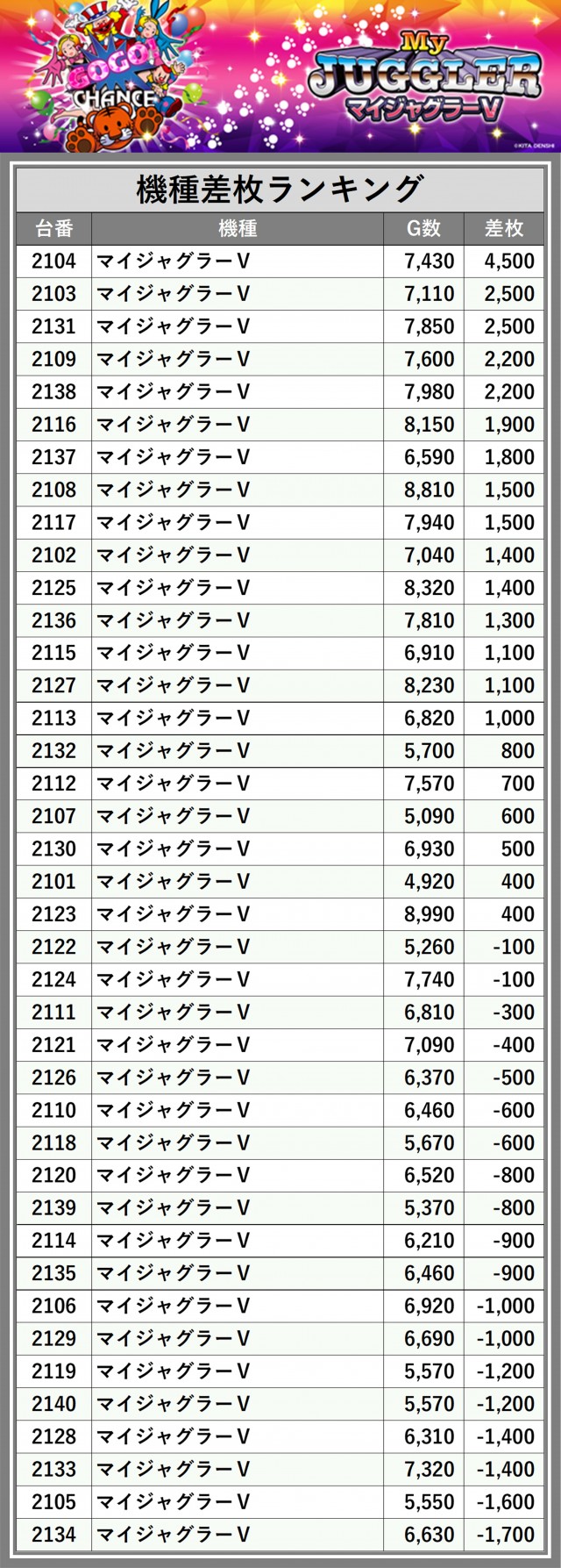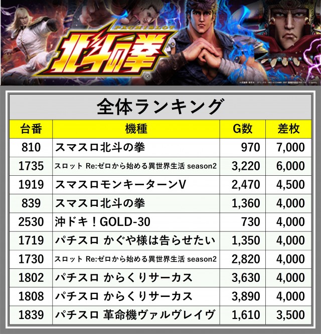厳選された取材対象機種をはじめ、その他スロット全体から好記録が飛び出した!プレイヤーが楽しんだ1日を下記データにて振り返ってみて欲しい。