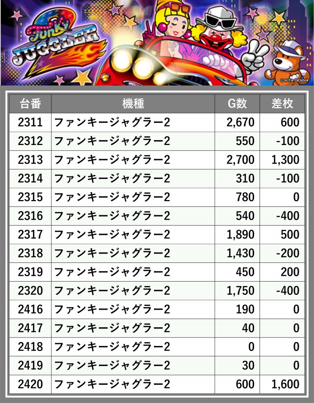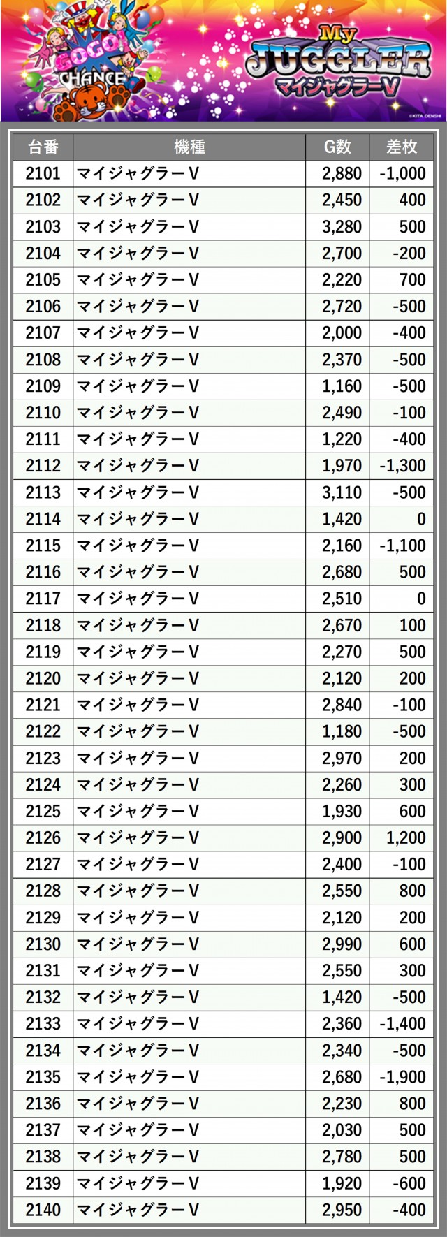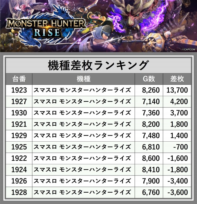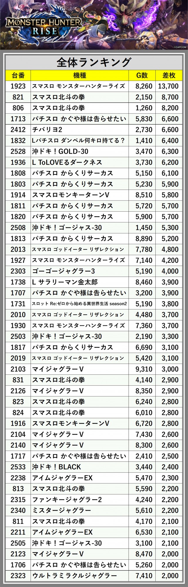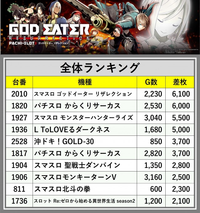 厳選された取材対象機種をはじめ、その他スロット全体から好記録が飛び出した!プレイヤーが楽しんだ1日を下記データにて振り返ってみて欲しい。