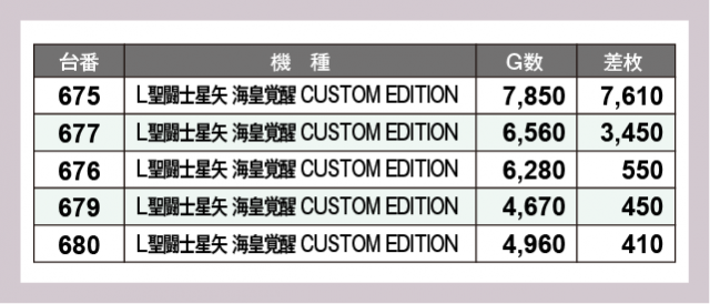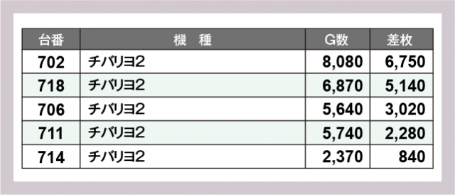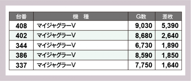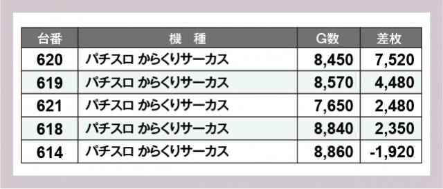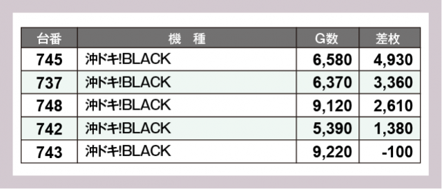 ※差枚数順に掲載しています