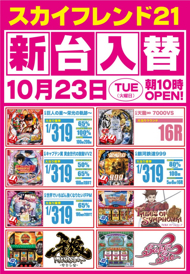 スカイ本日新台入替!三洋初!設定付P海物語21台導入!!