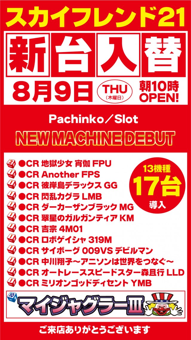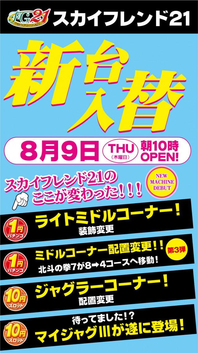 スカイフレンド新台入替準備の為お休みです(^-^)~☆