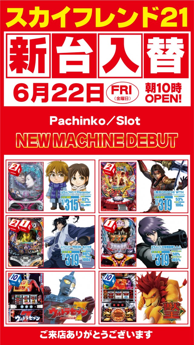 スカイフレンド新台入替!10時開店!!