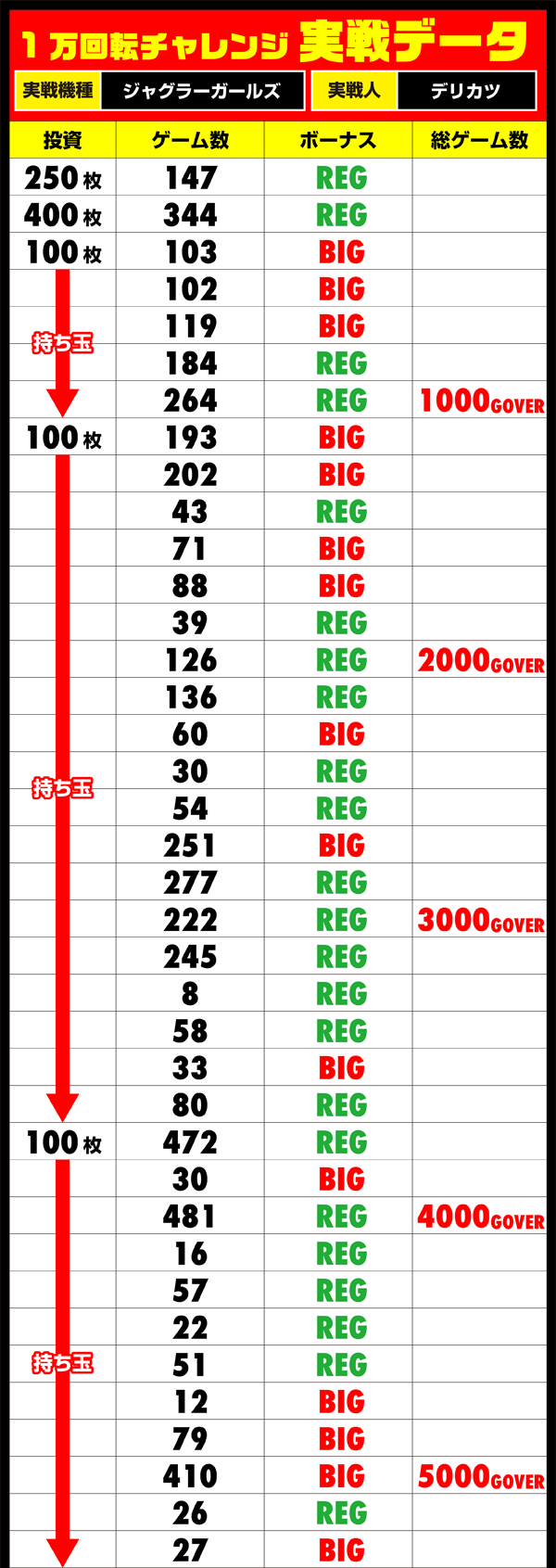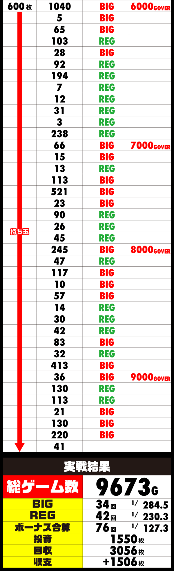 1000G以上のハマりといった消化スピードをあげられる展開があるも、中盤にはペースダウン。