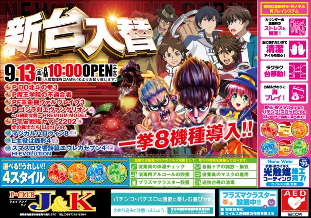 明日9月13日(金)新台入替10時開店!(予定)