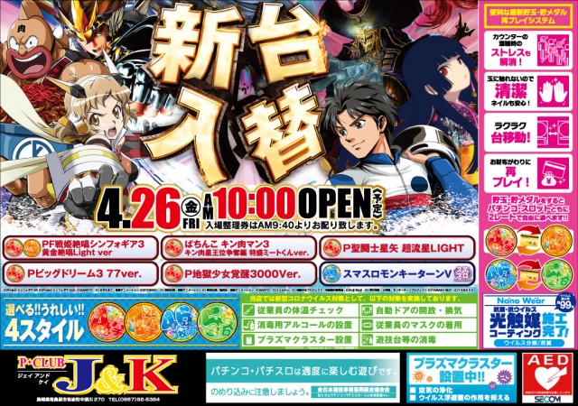 明日4月26日(金)新台入替10時開店!(予定)