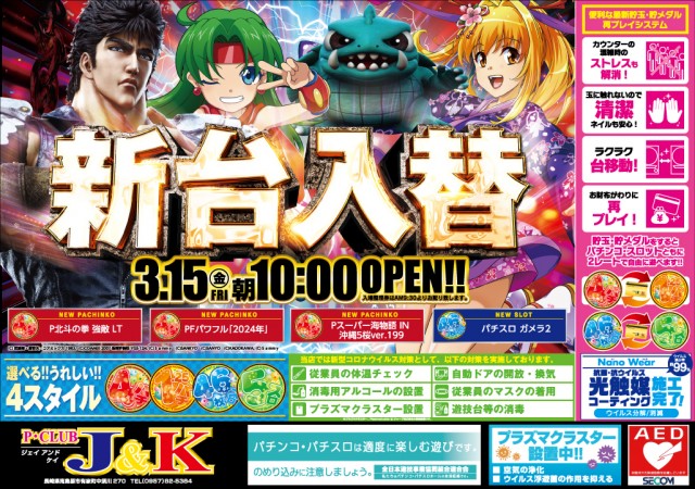 新台入替時のみAM9:40から整列順に入場整理券配布 |