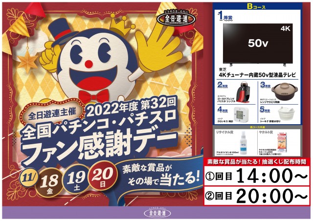 本日・第32回全国パチンコ・パチスロファン感謝デー開催