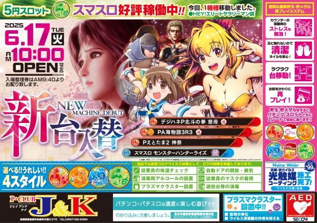 本日6月17日(火)新台入替10時開店!