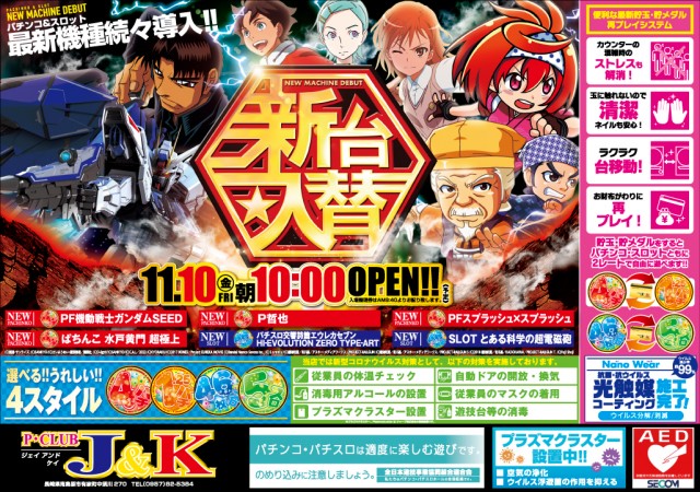 新台入替時のみAM9:40から整列順に入場整理券配布 |