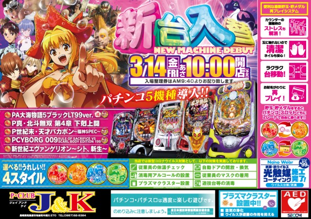 新台入替時のみAM9:40から整列順に入場整理券配布 |