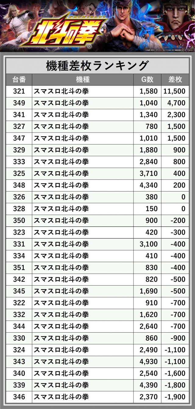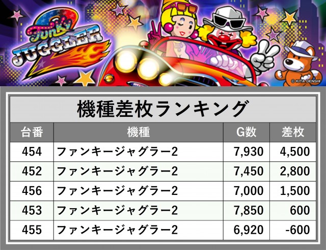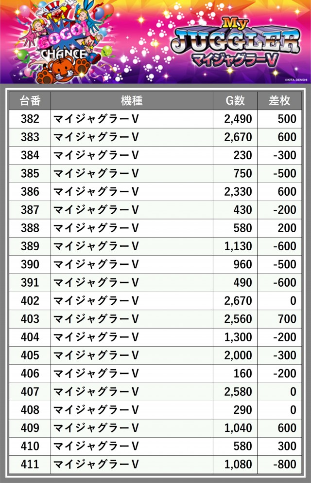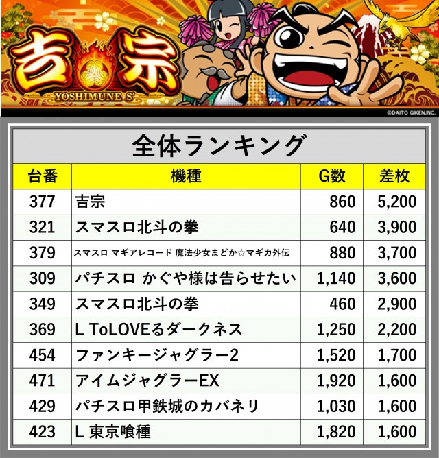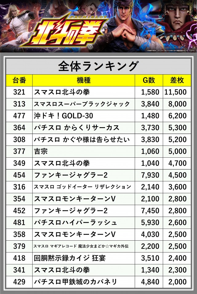厳選された取材対象機種をはじめ、その他スロット全体から好記録が飛び出した!プレイヤーが楽しんだ1日を下記データにて振り返ってみて欲しい。